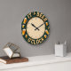 This is a wall clock featuring a dark green border and a light beige face. The phrase "IT'S BEER O'CLOCK" is written around the top and bottom in large, three-dimensional, light-colored block letters. The outer border is decorated with various sizes of illustrated beer mugs and glasses filled with foamy, golden beer. The hands and minute markings are black. The design may look real due to the high detail and three-dimensional texture in the artwork.