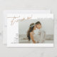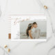 Dessa moderna rädda datum-kort med fotomall till höger och stilren typografi i falskt koppar-guld-folie, som läser "it's so on!". Oavsett vad som händer i världen, så gifter ni er iallafall!! Baksidan av kortet har en tunn randig design och två textmallar för att lägga till er bröllopswebbplats eller annan anpassad text (eller ta bort helt).
