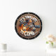 This intriguing wall clock features a unique and somewhat ominous design. A character with a lantern peeks out from what appears to be a wooden barrel or door, accompanied by the bold phrase, "It's Too Late to Come...". This clock adds a mysterious and conversation-starting element to any space.