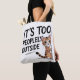 Sometimes you just have to go outside… but that doesn’t mean you have to enjoy it. This introvert-approved tote bag features a hilariously grumpy cat and the phrase “It’s too peopely outside.”