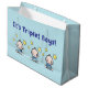 This cute "It's Triplet Boys!" large gift bag in blue is perfect for your triplets baby gift. Make your triplet boys baby shower gift more special by using a custom gift wrap. The bag features three cute baby cartoons and the message "It's triplet boys" while the back is teeming with lots of triplet boy babies. Designed by Best Baby Gifts for Triplets - given with love.