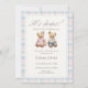 Its Twins Pastel Plaid Teddy Bear Baby Shower Inbjudningar