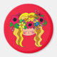 En ljuvlig magnet av en tjej som bär en blommigt huvudbit som de som bar på Ivana Kupalas festligheter. Vallmo representeras i hörnet eller kranen och representeras också av den röda bakgrunden. Se hela magneten och dekorera kylen med färg.