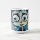 En fantasifull karaktär med stora ögon och pigg hår visas med en häpen min sittande vid ett bord med en ångande kopp och en udda toaster. Bakom karaktären är bakgrunden livlig, fylld med olika skisser och klotter som ger en lekfull, kaotisk stämning till scenen.