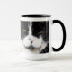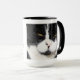 Dra tillbaka den klippte femton unskaffemuggen med ett slut vänder mot upp det sköt fotoet av en svartvit katt med gula ögon på en sida, och "FICK I'VE En CATTITUDE!", på annat.
