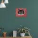 En digital porträtt-målning av en katt över en målad orange-rosa-bakgrund.