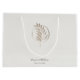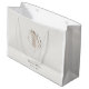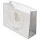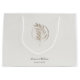 Elegant bröllop-presentväska med en känslig skugga innesluten i en cirkel med en mjuk elfenbenspalett och benvit färg-palett. Designen innehåller en simulerad 3D-bokstavseffekt som skapar ett förfinat och texturerat utseende. Perfekt för att presentera favoriter, välkomna gåvor eller tack-tack-token. Den här presentpåsen tillför en sofistikerad beröring till bröllop firande.