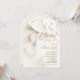This arch invitation isn't just a detail; it's a statement piece that promises an event filled with grace, joy, and unforgettable moments as she prepares for her journey to "I do."