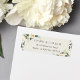 I vår samling av vattenfärgen blommigt bröllop i Elfenbenskusten finns delikatmålade vattenfärgsgreer, eukalyptus löv, botaniskt lövlök i grönt och vita och elfenbensblommor. Anpassa den här matchande returadressetiketten med namn och returadress.