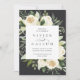 Vår bröllopsinbjudan i Ivory Bloom omger din bröllopsdag med ett fyrkantigt ram av målat vattenfärgsgrönt, eucalyptus löv, botaniskt lövverk och vit ros och peonblommor.