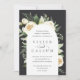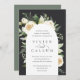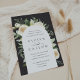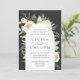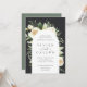 Vår bröllopsinbjudan i Ivory Bloom omger din bröllopsdag med en graciös båge av målad vattenfärgsgrej, eukalyptus löv, botaniskt lövlöv och vit ros och peonblommor.