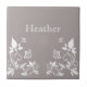 Söt och stam Butterfly Blommigt Tile med en muterad dammig-grått-bakgrund och elfenbensfjärilar och blommigt vinförnimmelser. Den här blommigten av eleganten skulle komplettera vilken dekoration som helst! Enkel att anpassa, lägg bara till den personlig du väljer i den fält som tillhandahålls. Klicka på knappen "Anpassa" för att hitta ytterligare anpassningsalternativ.