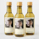 Dessa mini-vin-flaska-etiketter har en design som är enkel, modern och minimalistisk med ditt foto på en bakgrund av elfenben eller kräm och en bildtext med texten "Kärlek & Tack" samt parets namn och bröllop-datumet. Det finns också utrymme för vin eller andra flaska innehåll. Perfekt för att tacka speciella gäster.