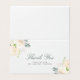 Ett vackert tack från bröllop för att du skickade uppskattningsanteckningar till dina gäster i bröllop. Den här designen har två hörnbuketter med vattenfärgsfärgat ro i kräm, elfenben och vitt samt grönt löv. I mitten står "Tack" i mörk grönt typsnitt med "från den nya Mr och Mrs. 'ditt namn'" i mörk grått serif-teckensnitt.