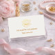 A soft ivory colored backgound. A faux gold lotus flower on the front. Personalize and add your name, title,
