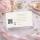 Back: name, title, qr code to your website, contact information and Facebook and Instagram icons.