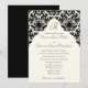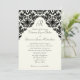 Ivory Linen and Black Damask Monogrammed Inbjudan
