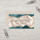 Det moderna affärskortet i elegant har en bild av elfenben silke, som är inramat på ovansidan och grund med tealblått vattenfärgat gräns som trimmas med glatt guld faux glitter. Anpassa den med ditt namn i ett skript för osvart handskrift-stil och din affärsinformation i sans serif-teckensnitt. Det omvända är en samordnande skugga av fast elfenben. Perfekt för hårstilister, makeup artists och estetikers.