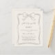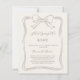 A soft ivory colored background, decorated with a hand drawn taupe colored bow. Personalize and add a name and party details.