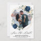 Mörk marin blå blommigt spara datumkortet med elegant bukett av marinblått, royal blått, vitt, guld, champagne elfenben, färg ro, vattenstånd, ranunkulus, peony, blomknoppar och sage grönt eucalyptus löv och elegant vattenfärg med runda glittrens geometriska neutralt ram. Kontakta mig om du behöver hjälp med anpassning eller om du behöver någon annan produkt med den här designen.