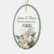 Söt nytillkomna pars första prydnadsföremål i julkeramik, med grafik av chic elfenben ro, på grund. Anpassa all text för att läsa vad du vill. Baksidan är identisk med framsidan och texten ändras på båda sidor samtidigt när du anpassar dig.