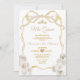 Ivory White Blommigt Bow Ribbon Guld Mis Quince Inbjudningar
