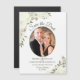 De vackra magnetkorten i bröllop spara datum har en strålande, men elegant handmålad blommigt med ditt foto i ett ovalt ram omgivet av ro, blommar och blommor i skugga av elfenben, vitt och grädde, med en avund av eukalyptus löv, grönsak och löv. Typografin har finare-skriptbokstäver. Det här snyggt boho-chicen är ett underbart sätt att se till att dina vänner och familj är medvetna om ditt kommande bröllop.
