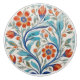 Detta är en reproduktion av en vintage antik keramisk plattform. "iznik turkish blommönster", "ottoman stil traditionell blomma", "mediterrean islamic muslim art", "dekorativ ornate flowery symmetry", "symmetritopkapi palats", "vintage white orange red", "mörk blått grönt armenian", "klassisk keramisk plattor av kalkon", "intricate teal turkos" botaniskt", "antika blommor, ljusa vilda blommor"