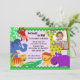 Färgglada vilda djur på vår "J är för djungel" födelsedagsinbjudan för barn. Ha en vild tid med denna roliga safari med färgglada djur! Anpassa med eget foto och text!