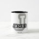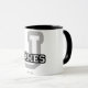 J är för James! Är ditt namn James? Eller har du en make, en pojkvän, en male familjemedlem eller en manlig vännen namngav James? Om så, är denna "initialer" mugg exakt gåvan som du söker efter! Designen presenterar "James" i skisserat svart märka överst av brev "J" i grått skisserad bokstäver.