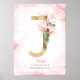 J Brev Monogram Guld Löv Rosa Magnolia Blommigt Poster