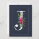 J Monogram Sista Initial Modern Blå Blommig Bröllo Inbjudningar