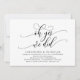 Markera början på din evighet med elegans med hjälp av vår contemporary, svart och vitt, bröllop elopement firande inbjudningskort, "Åh ja, det gjorde vi". Perfekt för par att utvidga sitt glada tillfälle, denna inbjudan är sofistikerad med en antydan om spelaktsamhet, som anger en minnesvärd händelse. Med ett modernt tema för skriptdesign utan tidslängd lägger det till en lite förfinad charm till dina festligheter. Den här inbjudan är skapad av TeeshaDerrick och lovar att på ett klokt sätt fånga din kärlek-historia.