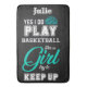 Flickor Basketball-designen säger: Ja, jag spelar Basketboll som en flicka försöker Behålla upp i vit och teal text. Personlig med namn!