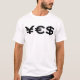 Lycka till- och välståndt-skjorta som presenterar de japanska yenna, euroen och den Förenta staterna dollaren. Den perfekta gåvan för en wall streetaffärsman eller en person som älskar pengar och finans.