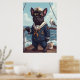 Den här lekande nautiska poster stjärnorna Seadog, den stolta fransmannen i fullt marinklänning. Med sitt tak lutat stilfullt och kikare låsta vid horisonten är han den mest fokuserade (och skickliga) sjömannen ombord. En fuktig fiskmås balanserar på axeln och ett mugg märkt "#1 Doggo" väntar i närheten. Med sjön bakom sig ser denna lojala valp ut som redo att försvara snacks och frihet. Perfekter för både kustbostäder, hund och militärområden.