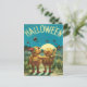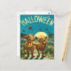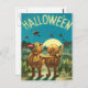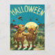 Det måste vara Halloween för att häxor flyger omkring och varelser tittar. Den här vintagen är Halloween-utskriften som innehåller pumpkindmonster som ser häxor flyga på deras ryggar. Ett fullt måne tänder himlar i bakgrunden.