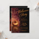 Lycklig Jack O'Lantern Halloween fest bjuds in med orange bokeh-gnistor på svart bakgrund. Perfekt för vuxnor eller tonåringar. Kostumes uppmuntrade. Skriptet Rustic Halloween fest.