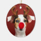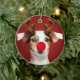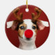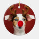 En söt Jack Russell-valp med renar och en röd näsa är redo till ge med många valpar för jul!