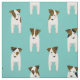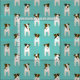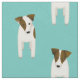 Den här charmerande Jacken Russell Terriers-väven har åtta tecknader JRT hundar med varierade bruna och svarta ansiktsmarkeringar och kroppsmarkeringar som ordnats i ett mellanliggande mönster - färg är anpassade, för närvarande lätt teal - Jack Russell Terriers mönster © katz_d_zynes 2019