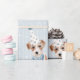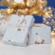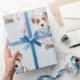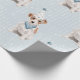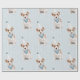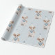 En Jack Russell hund i en party-hatt-inslagningsdesign. Blåbakgrund med ljus omger den här mönstrade presentomslaget pappert.