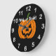 en grimacing jackO lykta som göras från en orange pumpa med svart triangelögon och näsa och toothy mun. Maj innehåller ord "happy halloween!", eller "bus eller godis!", vilket kan redigeras.