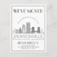 Ett unikt modernt vykort med rörelseanmälan i deco-stil för den vackra staden Jacksonville, Florida. Detta kort har en stiliserad illustration av stadens unika siluett med dess namn undertill. Detta följs av din adressinformation i en matchande öppen linje-stil. Alla enskilda delar av kortet är upplåsta så att du kan ändra eller lägga till nödvändiga detaljer med hjälp av anpassningsfunktionen.