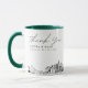 Modern Jacksonville-skyline kaffemugg för favorsom bröllopspresent med "tack"-text. Designen visar en fantastisk skiss med möjlighet att anpassa era namn och exakta plats. Gå in i Zazzles designverktyg för ytterligare anpassningar.