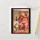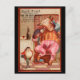 Denna Jacob Feigel, tillverkare & handlare av fint och tungt sele och mer, har en brun och vit ansiktad ko, iklädd vintage, viktoriansk, randig klänning och blå kappa sittande i en stol med ett förstoringsglas. Han tittar på en groda i en röd kappa som håller en topp hatt stående upprätt. Kon har en fot på en fotpall, och ett bord bredvid sig med en flaska och ett klart glas med något rött. En färgrik reklam som kan skickas till alla som älskar vintage, viktoriansk eller lantlig reklam.