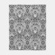 Jacobean Blommigt Damask, Black, White och Grått Fleecefilt