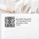 Jacobean Blommigt Damask, Black, White och Grått Returadress Etikett