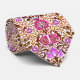 Tie i vintagen William Morris jacobean blommönster, digitalt förstärkt och färgad, i fuchsia rosa, violet lila och chokladbrun, på vit bakgrund