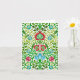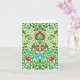 Kort i vintagen William Morris jacobean blommönster, digitalt förstärkt och färgad, i löv grönt, kolröd och cerulenblått, på vit bakgrund