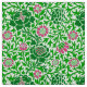 Fabric in a William Morris tapet design in deep emerald and lime green, accted with fuchsia rosa, against a pastel grönt bakgrund